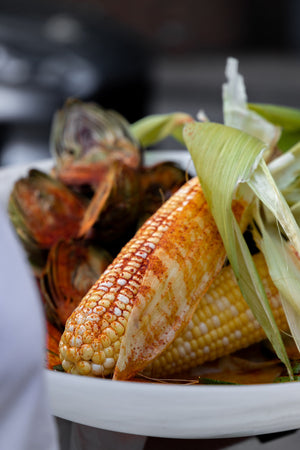 When you "shuck" the corn do not remove the leaves, simply peel them back and remove the corn's silk. Pull the silk away from the ear, rise with cold water and then wipe dry and wipe away excess silk with a paper towel. Next, brush each ear of corn lightly with oil and dust lightly with Samy Spice. Get grill hot - ideally so flames are reaching close to grill, place corn directly on grill, let the corn caramelize in the flame to your liking. It is ok to let it char! The peeled back leaves may smoke and/or burn. This will both look beautiful but also add a nice aroma. Remove from grill at desired doneness (we like it charred) and immediately sprinkle Samy Spice liberally onto corn while hot. Serve immediately and enjoy the best grilled corn of your life!